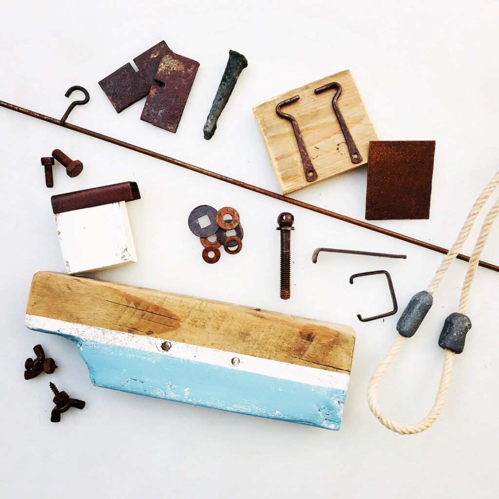 Ollivier es bretón, llegó a España hace 25 años y está afincado en Sitges. Le encanta dar largos paseos por las playas y las calas de las Costas del Garraf. De aquí viene su inspiración. Durante esos paseos por la costa, recoge maderas a la deriva, metales oxidados, partes de redes de pescadores y otros desechos del mar. Durante el confinamiento empezó a transformar todo lo que había recogido, en piezas únicas con inspiración náutica. Ballenas, faros, barcos o pueblos de pescadores nacen en función de la forma de las piezas de madera. Así nació el proyecto RESEACLA, cuyo nombre viene de la combinación de RECICLA en castellano, y SEA en inglés. Dos temas a los que Ollivier da mucha importancia: el reciclaje y la protección del mar. El trabajo que envió se puede ver en las 5 imágenes de arriba.