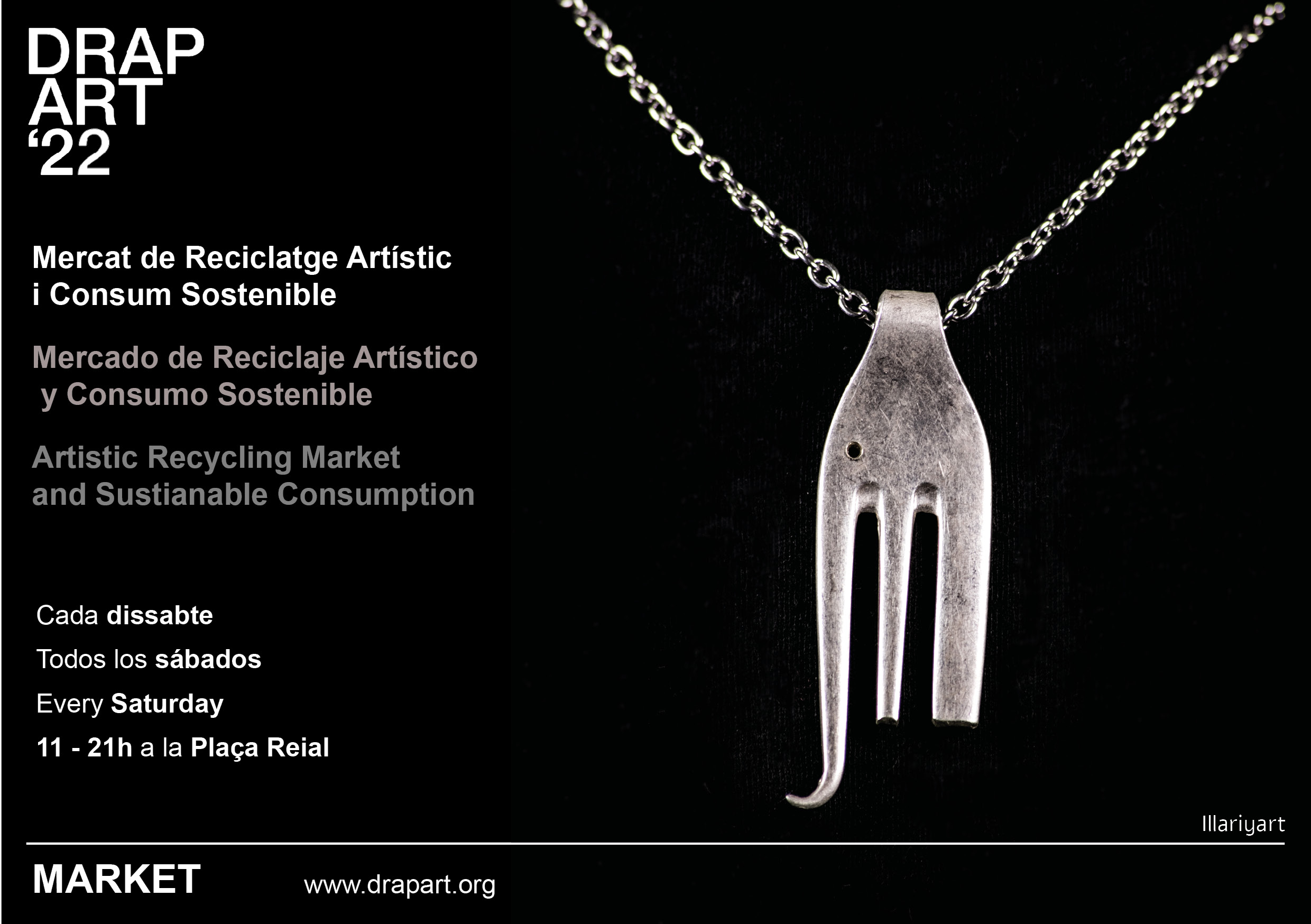 Este sábado, día 5 de marzo volvemos a la plaza Real de 11 a 22 h con la temporada 2022 del Mercado de Reciclaje Artístico y Consumo Sostenible. Encontrarás una variedad de artistas, artesanos y diseñadores que ofrecen una vasta selección